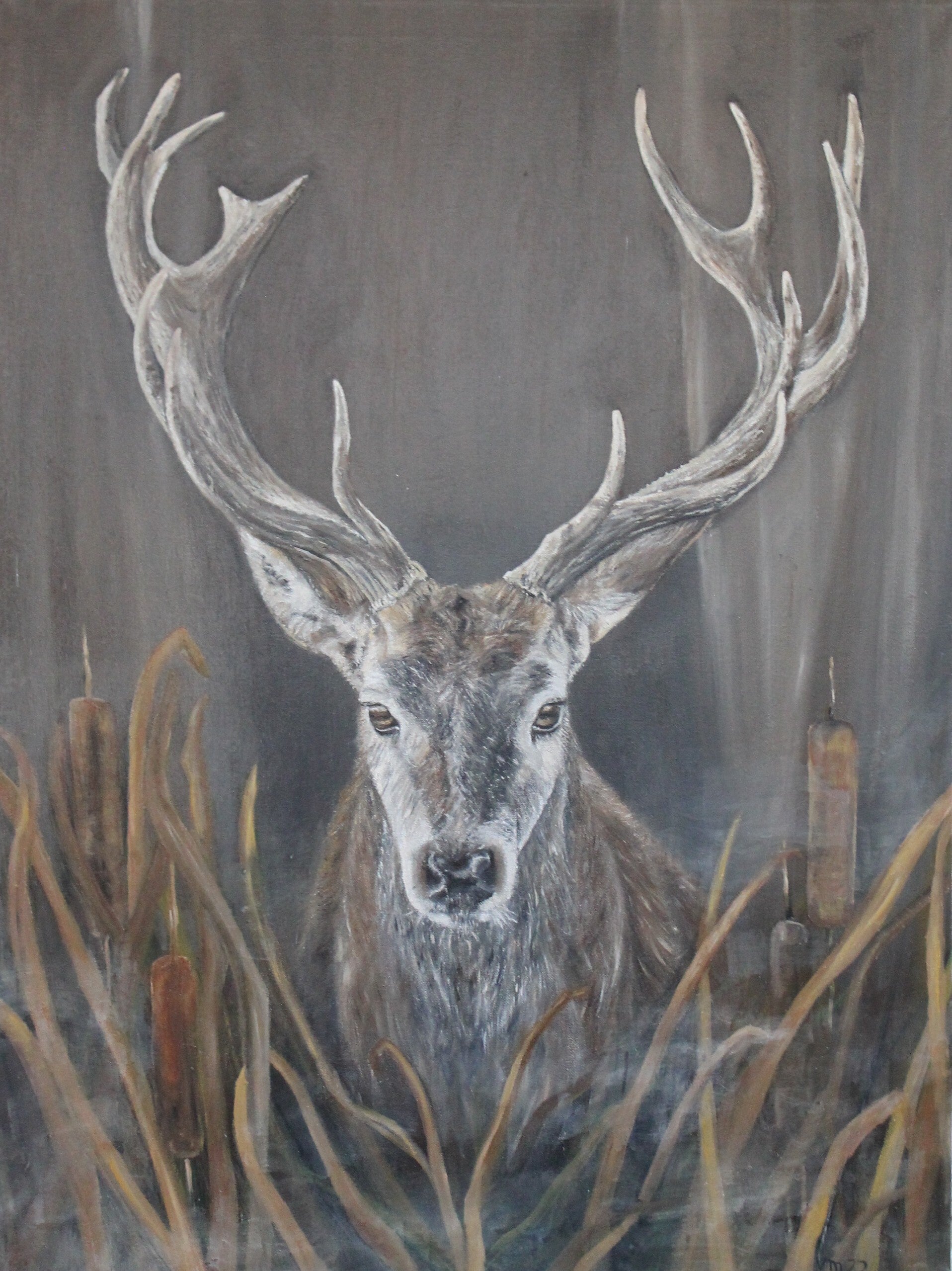 Hirsch im Abendlicht " Im Schatten des Schilfs" 60 x 80 cm